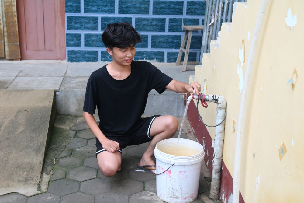 山東冠縣一名農(nóng)村居民在檢查自來水壓力。(受訪單位供圖)