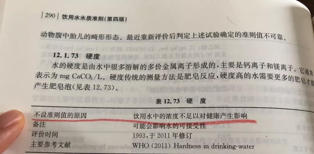 “飲用水中的硬度不足以對健康產(chǎn)生影響”,同時補充了一句“對那些缺乏鈣和鎂的人來說,飲用水可以作為補充鈣和鎂的主要來源”。