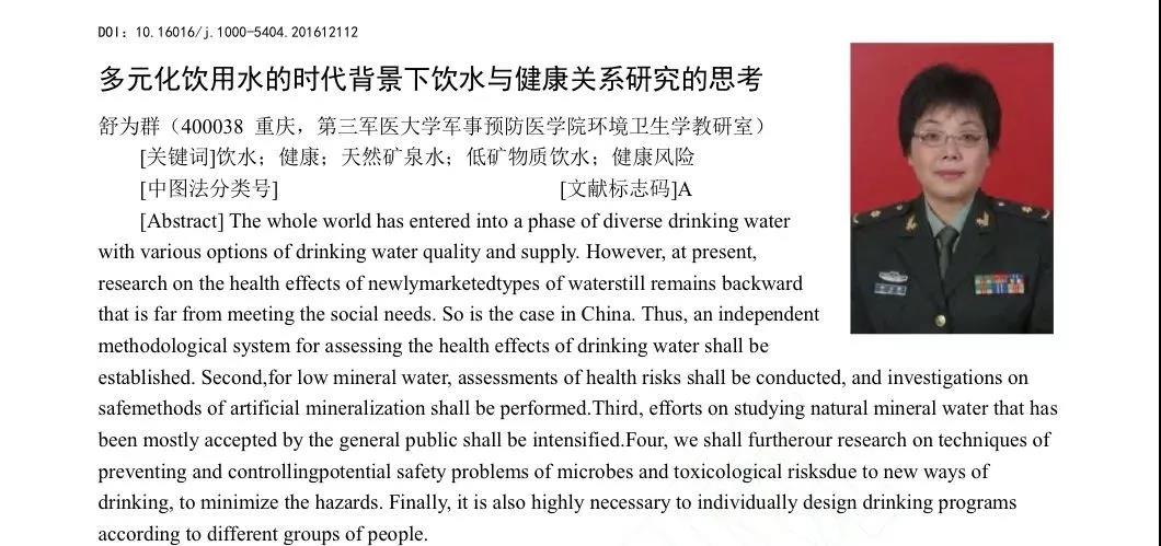 舒為群教授在2017年發(fā)表的一篇研究報告中,對飲用不含礦物質(zhì)水的健康風(fēng)險進(jìn)行了系統(tǒng)而詳細(xì)闡述,指南指出: 包括純水、蒸餾水、去離子水、脫鹽水、反滲透水等在內(nèi)的,完全或幾乎去除了礦物質(zhì)的飲用水,有充分的研究證據(jù)表明它們在未被再礦化前不適合作為人類飲水。