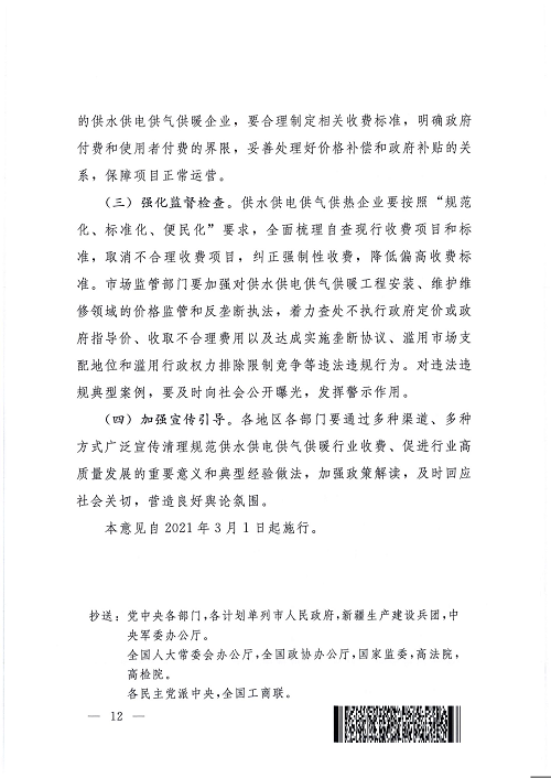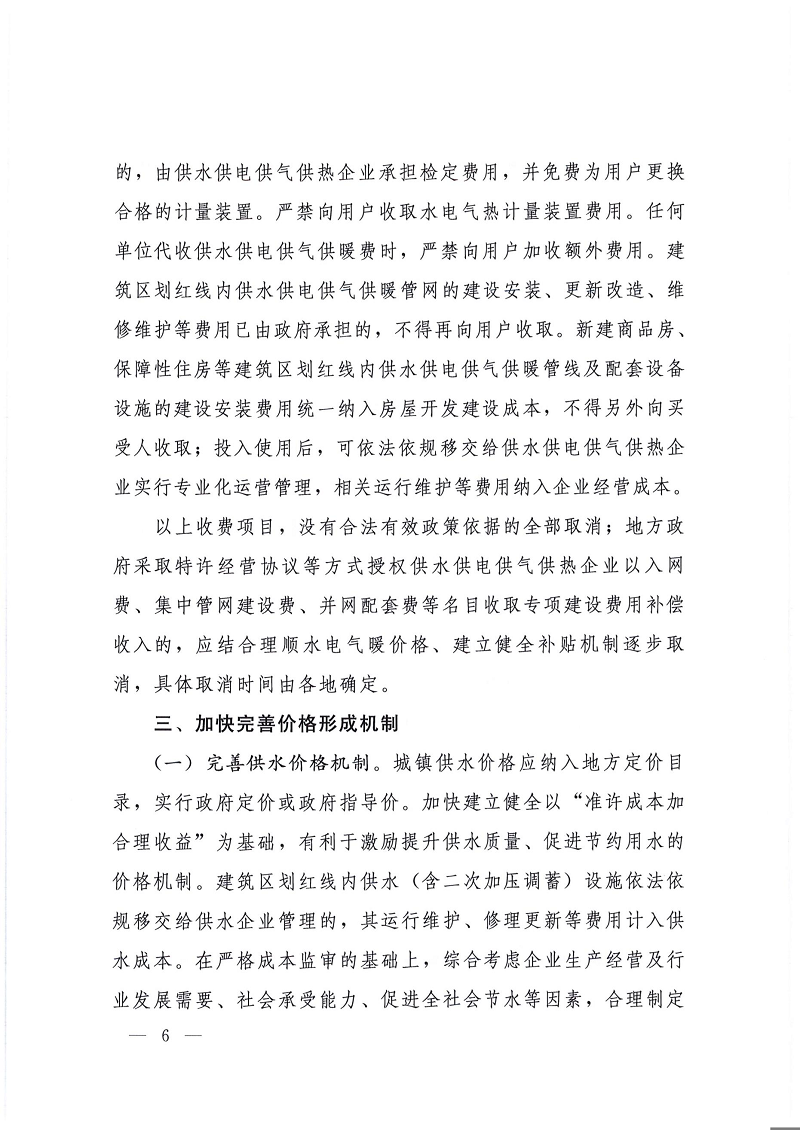 關(guān)于清理規(guī)范城鎮(zhèn)供水供電供氣供暖行業(yè)收費(fèi)的通知