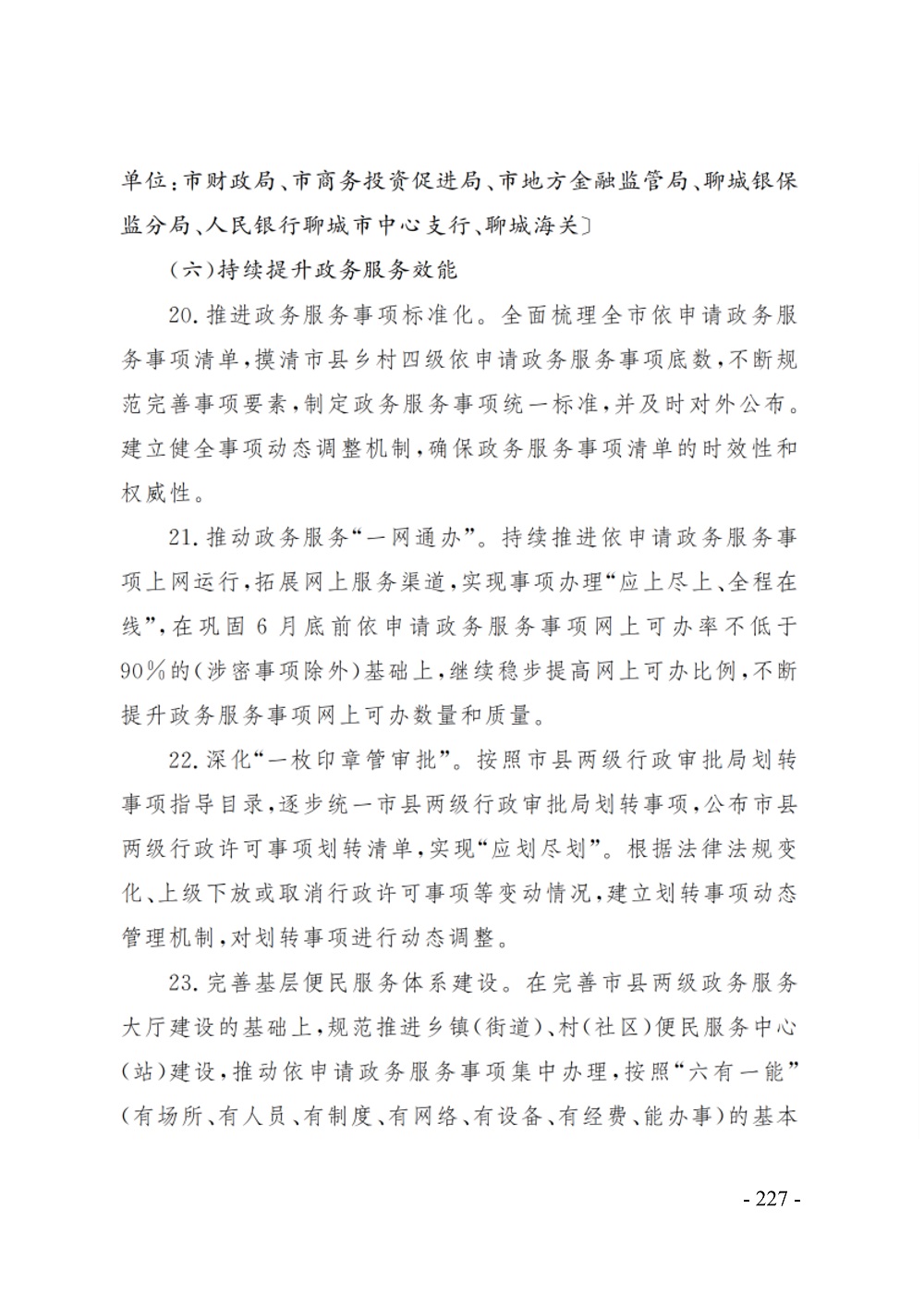 聊城市人民政府印發(fā)關(guān)于持續(xù)深入優(yōu)化營商環(huán)境加快推進政府職能轉(zhuǎn)變