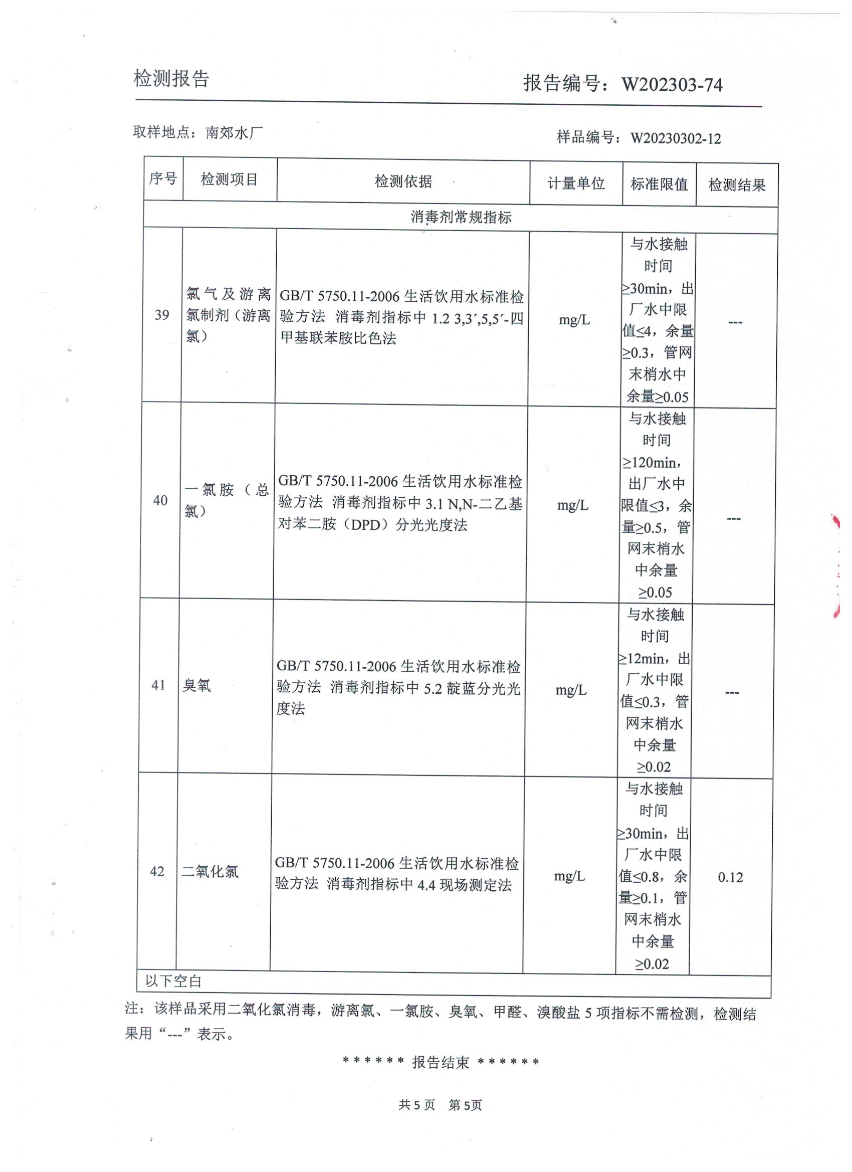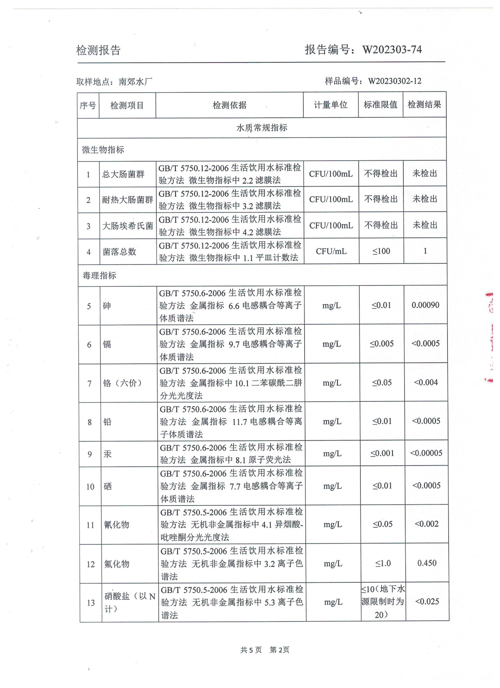 2023年3月城區(qū)水質(zhì)檢測報(bào)告