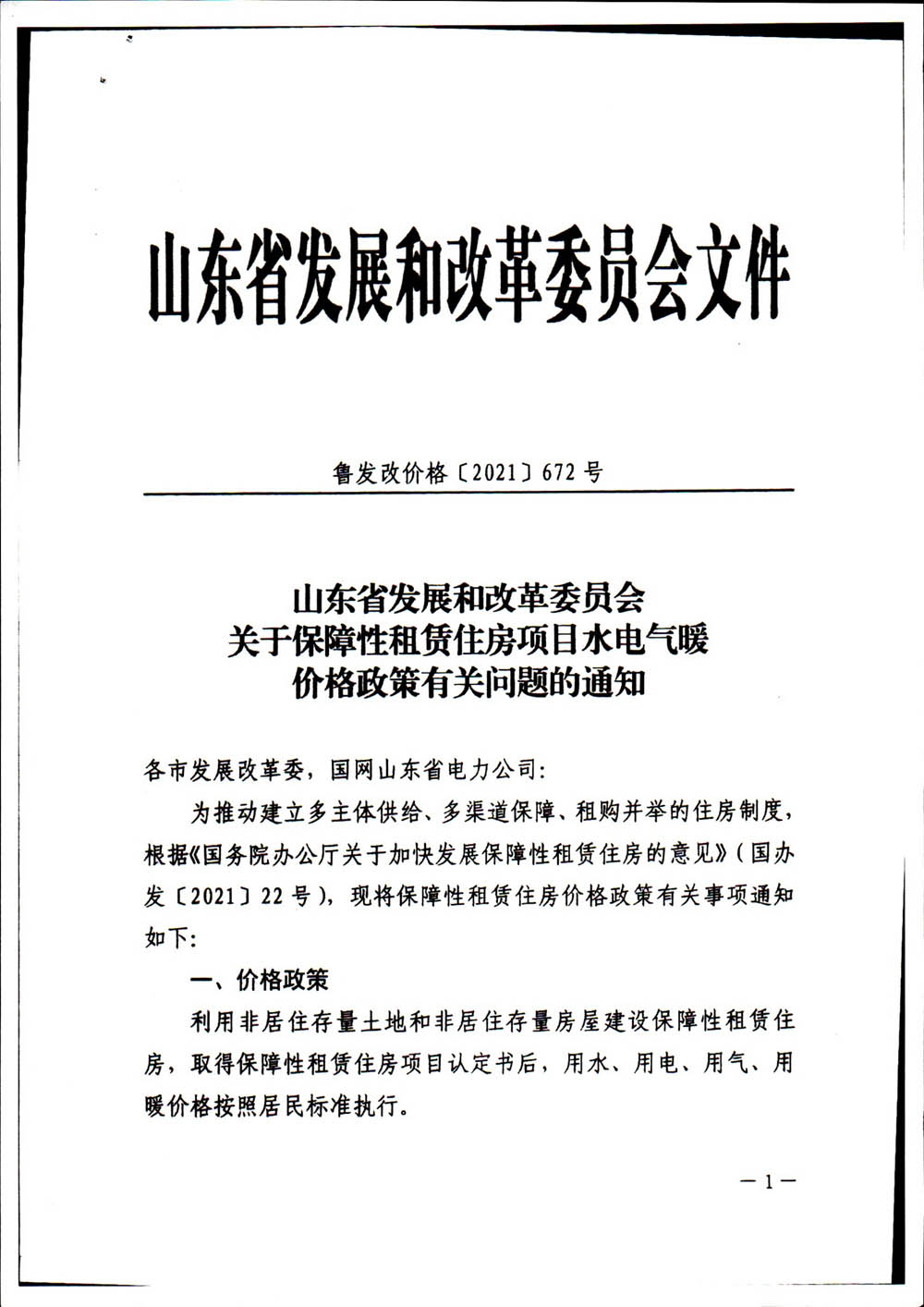 關(guān)于轉(zhuǎn)發(fā)《山東省發(fā)展和改革委員會關(guān)于保障性租賃住房項目水電氣暖