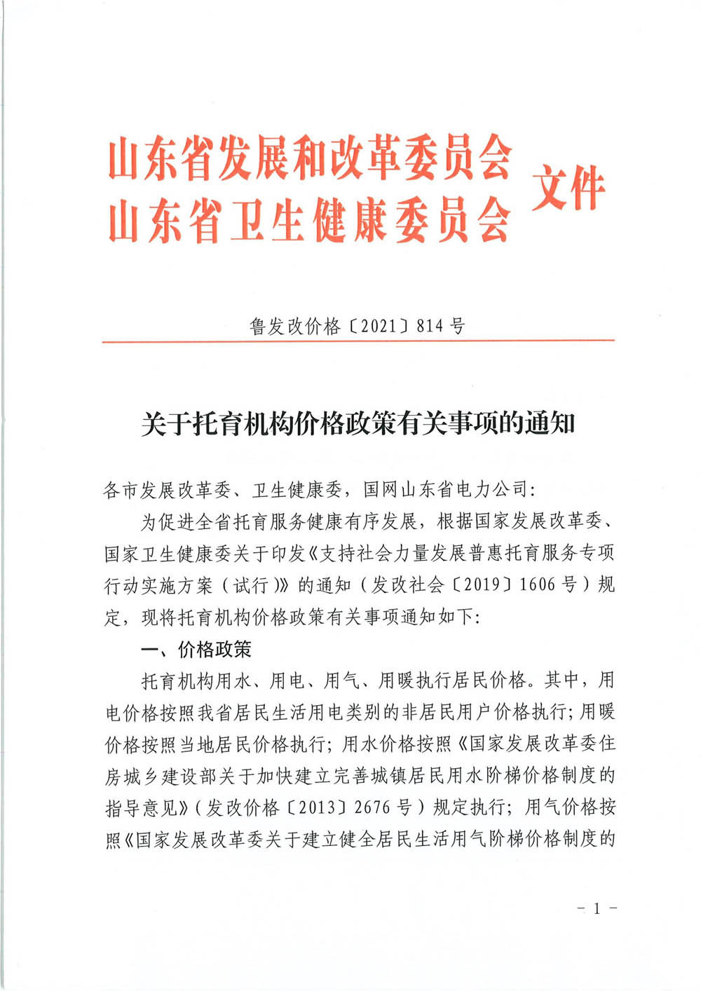 關(guān)于托育機(jī)構(gòu)價(jià)格政策有關(guān)事項(xiàng)的通知