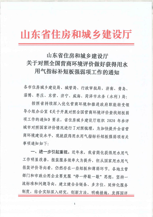 關(guān)于對(duì)照全國(guó)政策做好用水用氣指標(biāo)補(bǔ)短板工作的通知