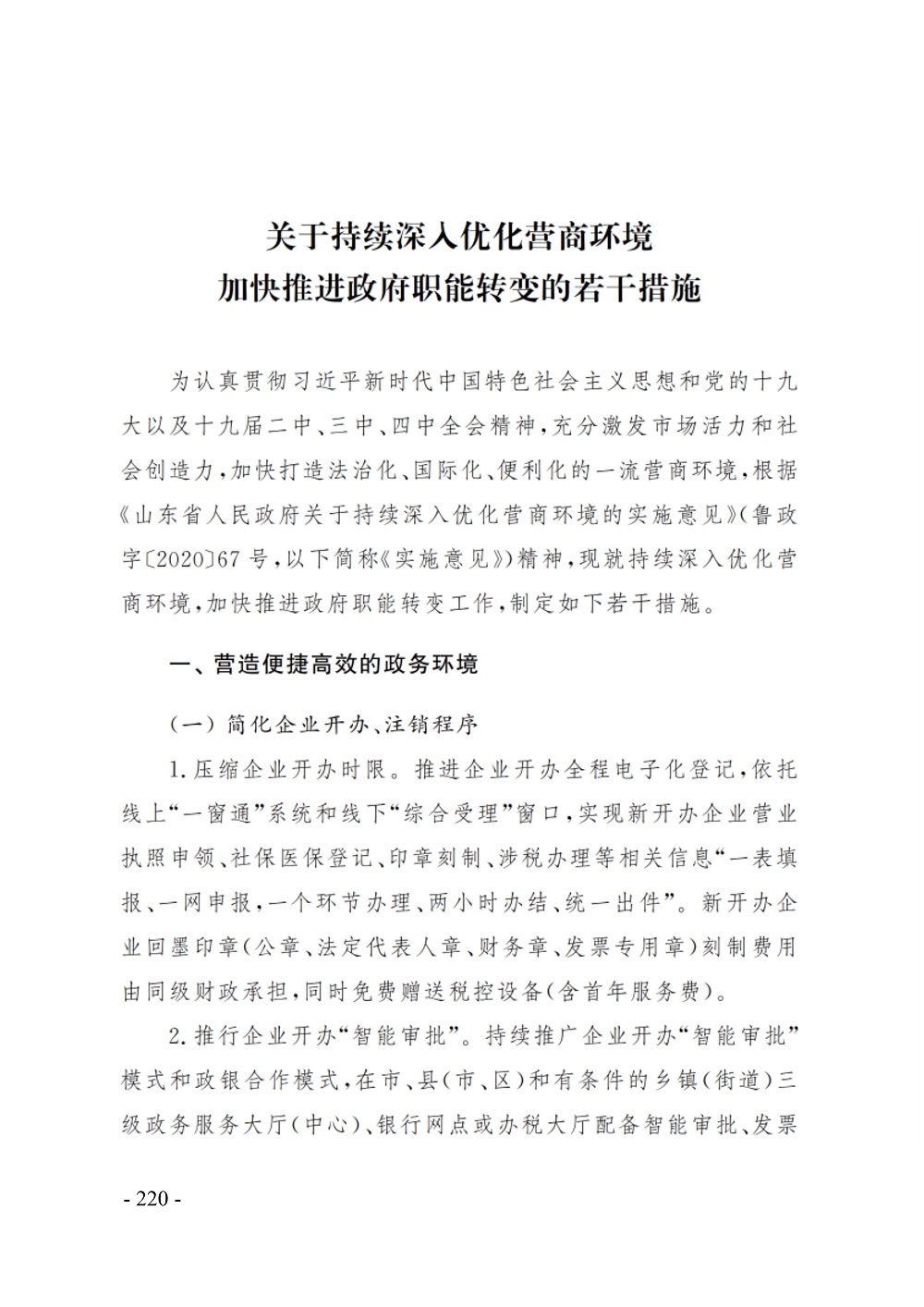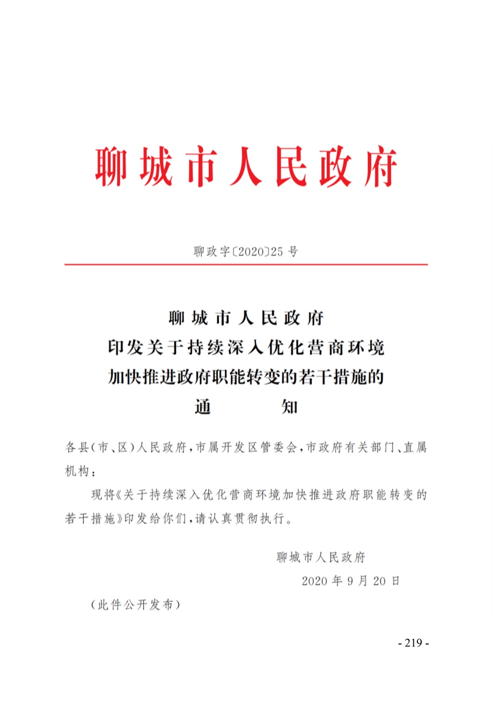 聊城市人民政府印發(fā)關(guān)于持續(xù)深入優(yōu)化營商環(huán)境加快推進政府職能轉(zhuǎn)變