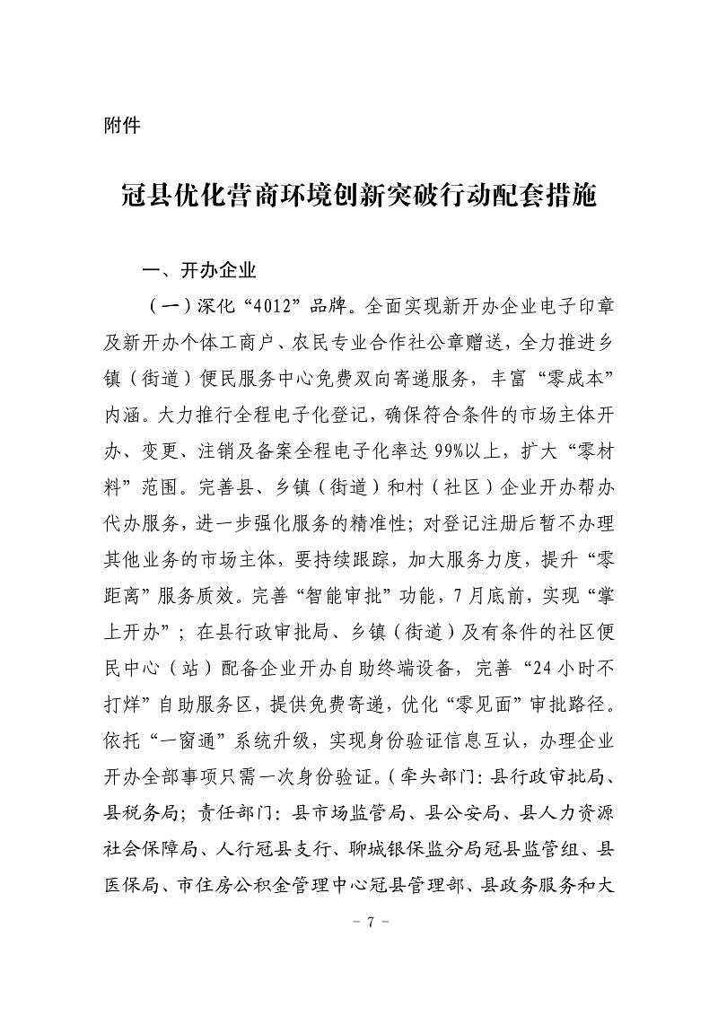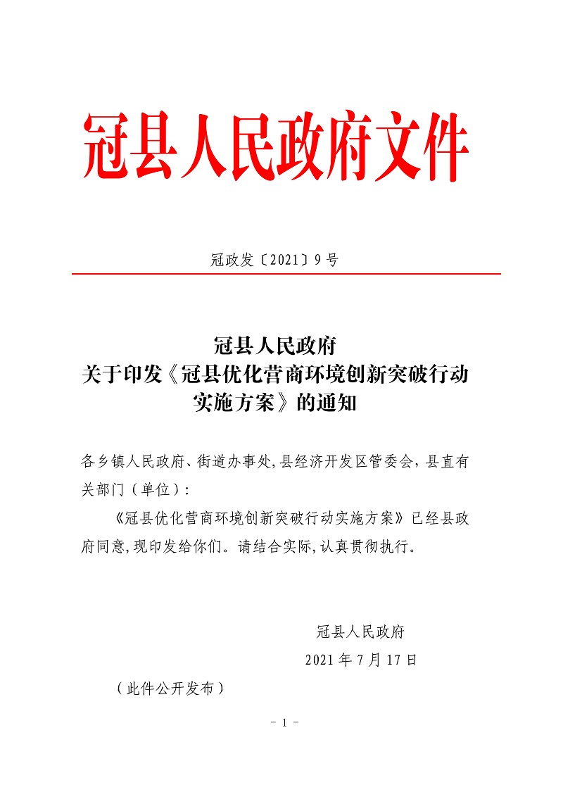 冠縣人民政府關(guān)于印發(fā)《冠縣優(yōu)化營商環(huán)境創(chuàng)新突破行動實(shí)施方案》的