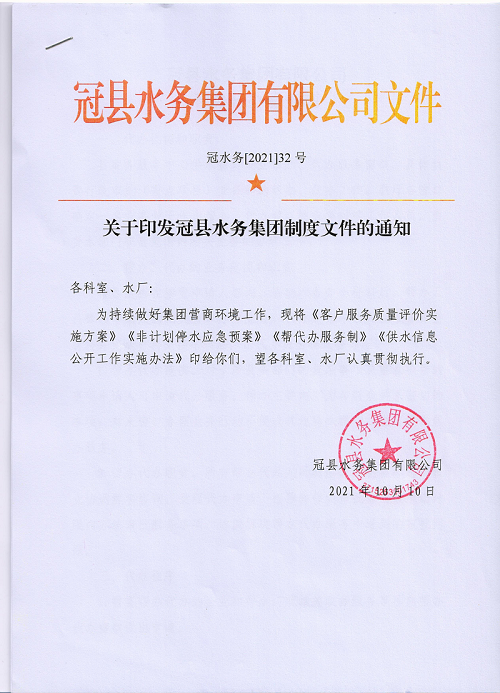 冠縣水務(wù)集團(tuán)有限公司供水信息公開(kāi)工作實(shí)施辦法