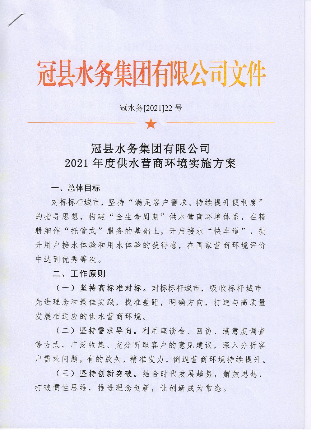 冠縣水務(wù)集團(tuán)有限公司2021年度供水營(yíng)商環(huán)境實(shí)施方案
