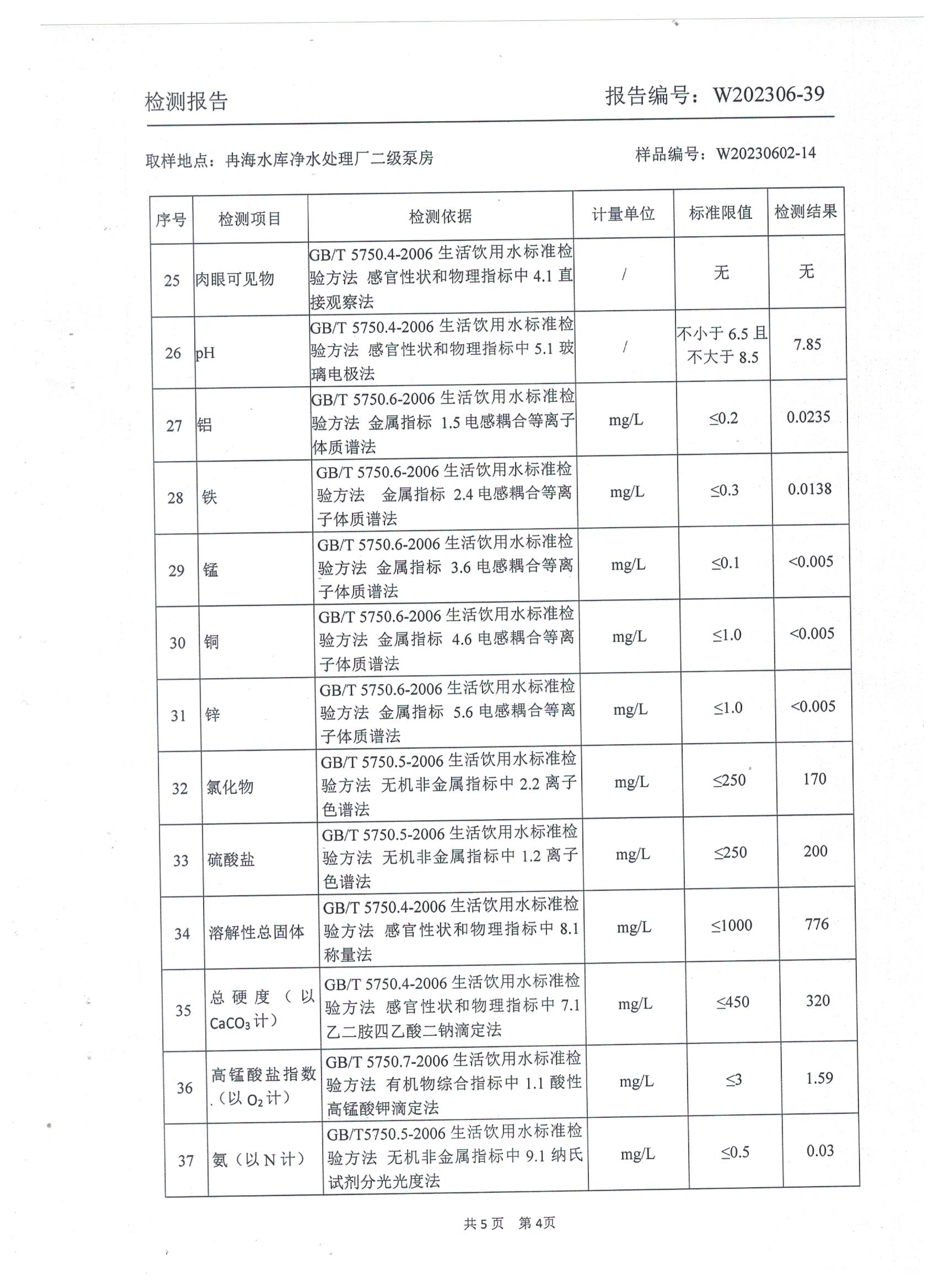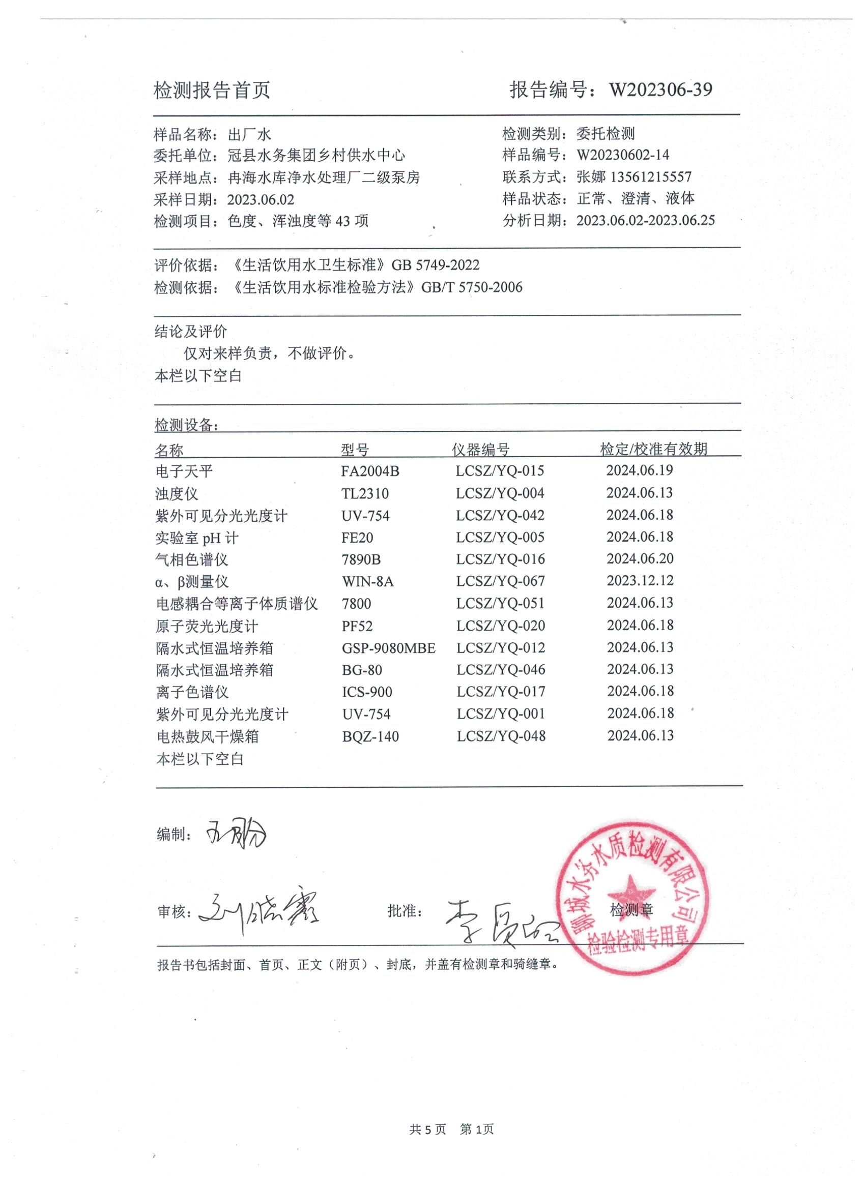 2023年6月鄉(xiāng)村水質(zhì)檢測(cè)報(bào)告