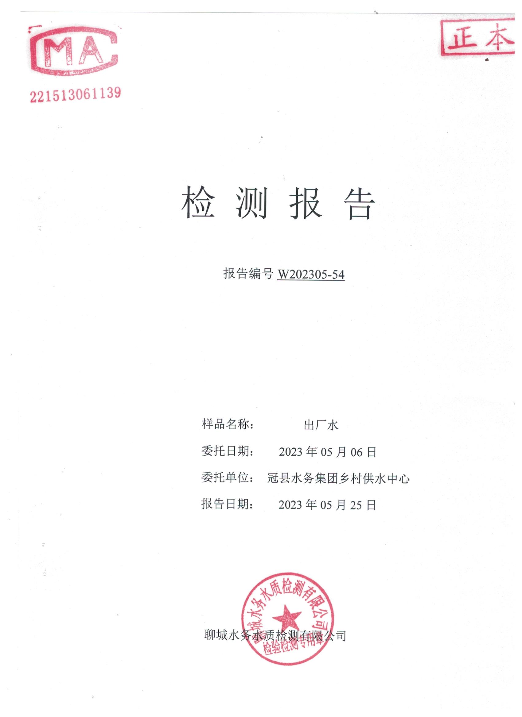 冠縣自來水水質(zhì)信息