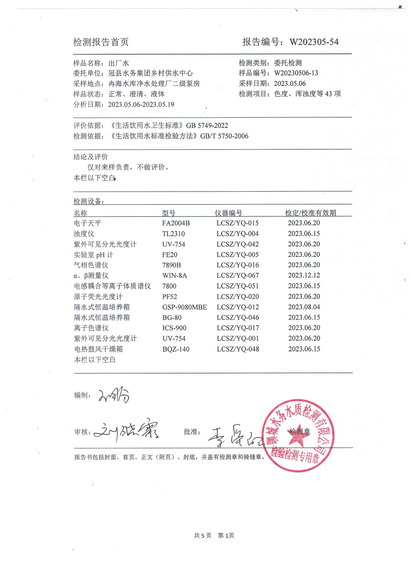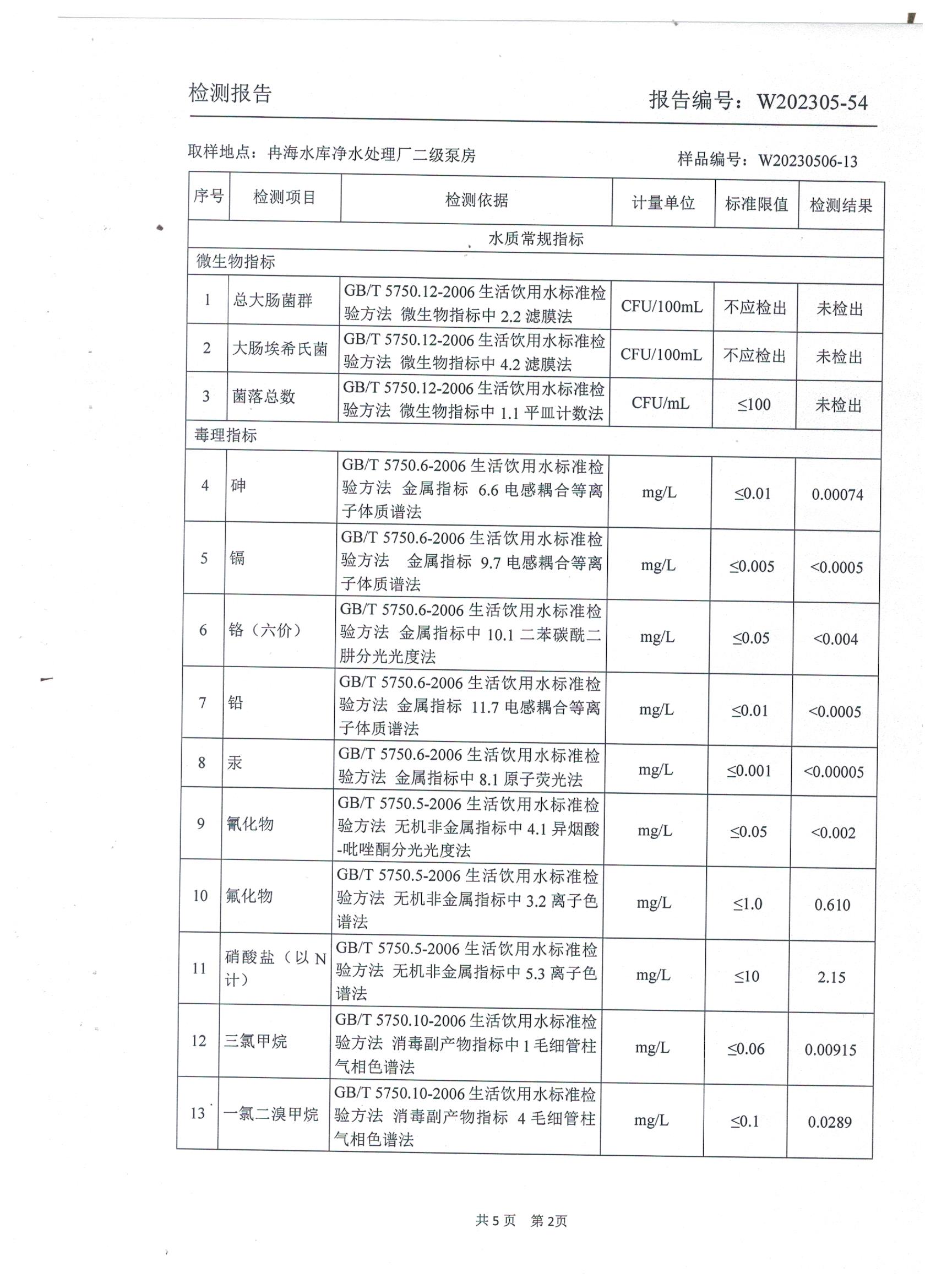 2023年5月鄉(xiāng)村水質(zhì)檢測報告