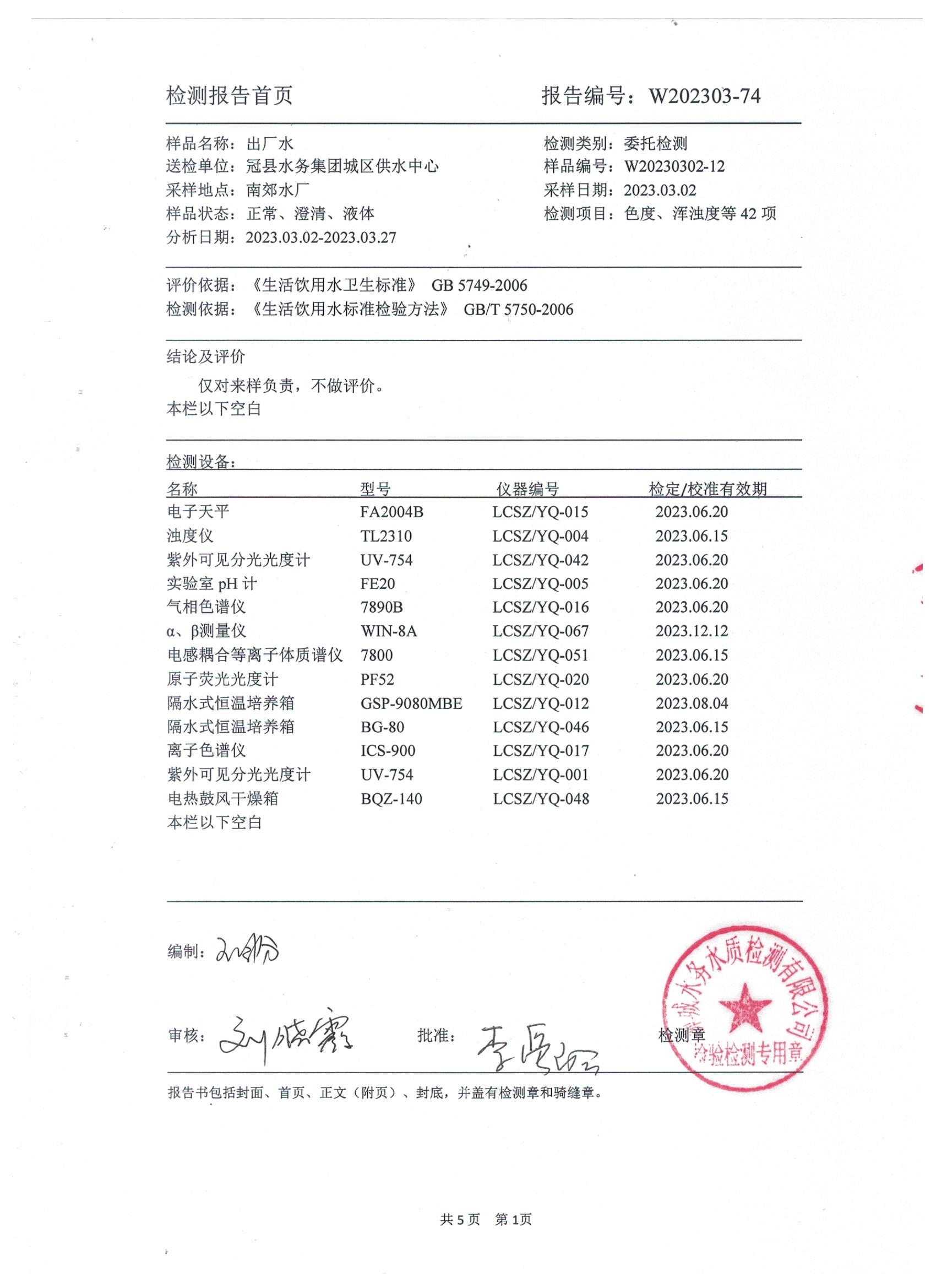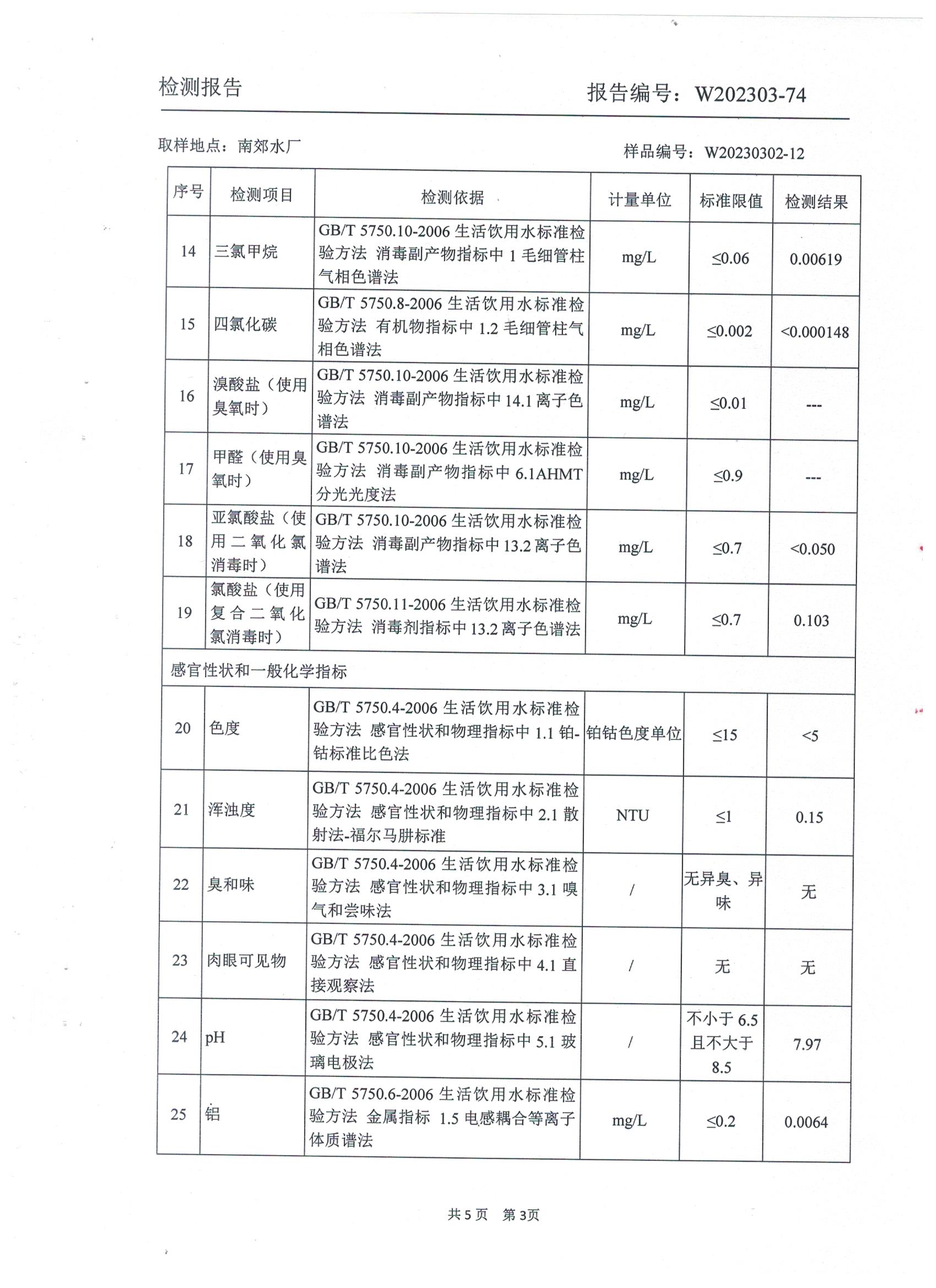 2023年3月城區(qū)水質(zhì)檢測報(bào)告