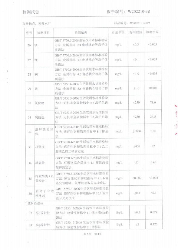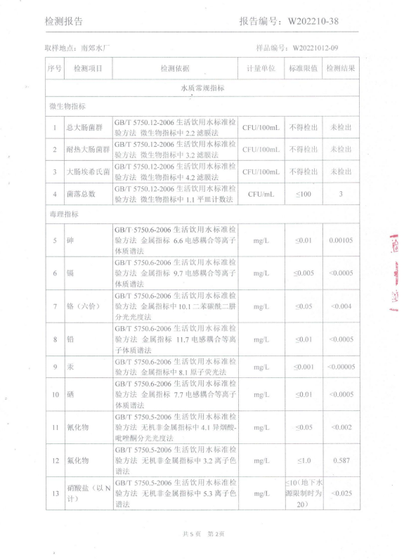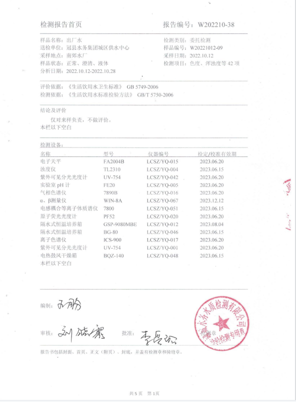 2022年10月水質(zhì)檢測(cè)報(bào)告