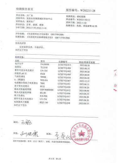 2022年11月份水質(zhì)檢測報(bào)告