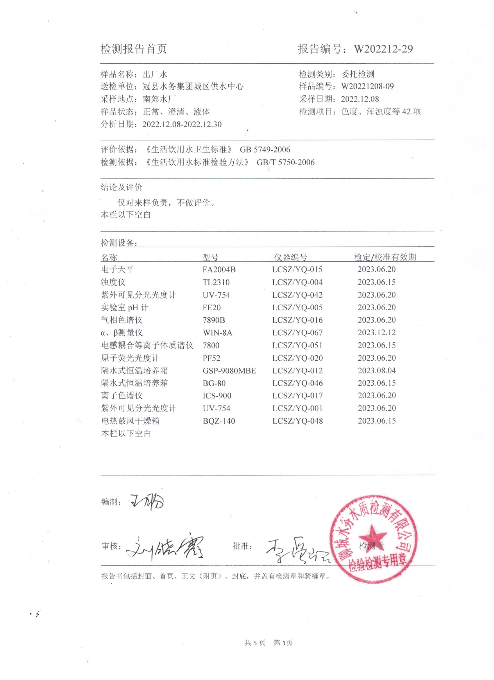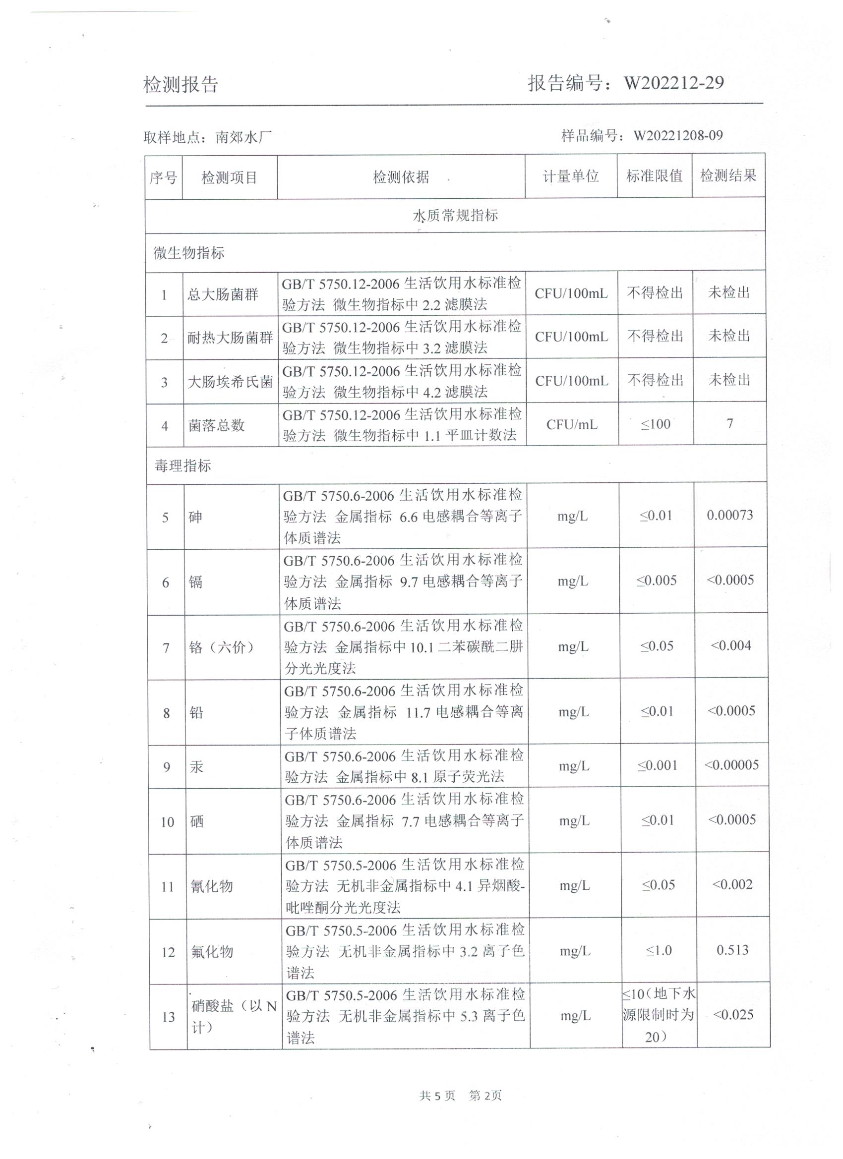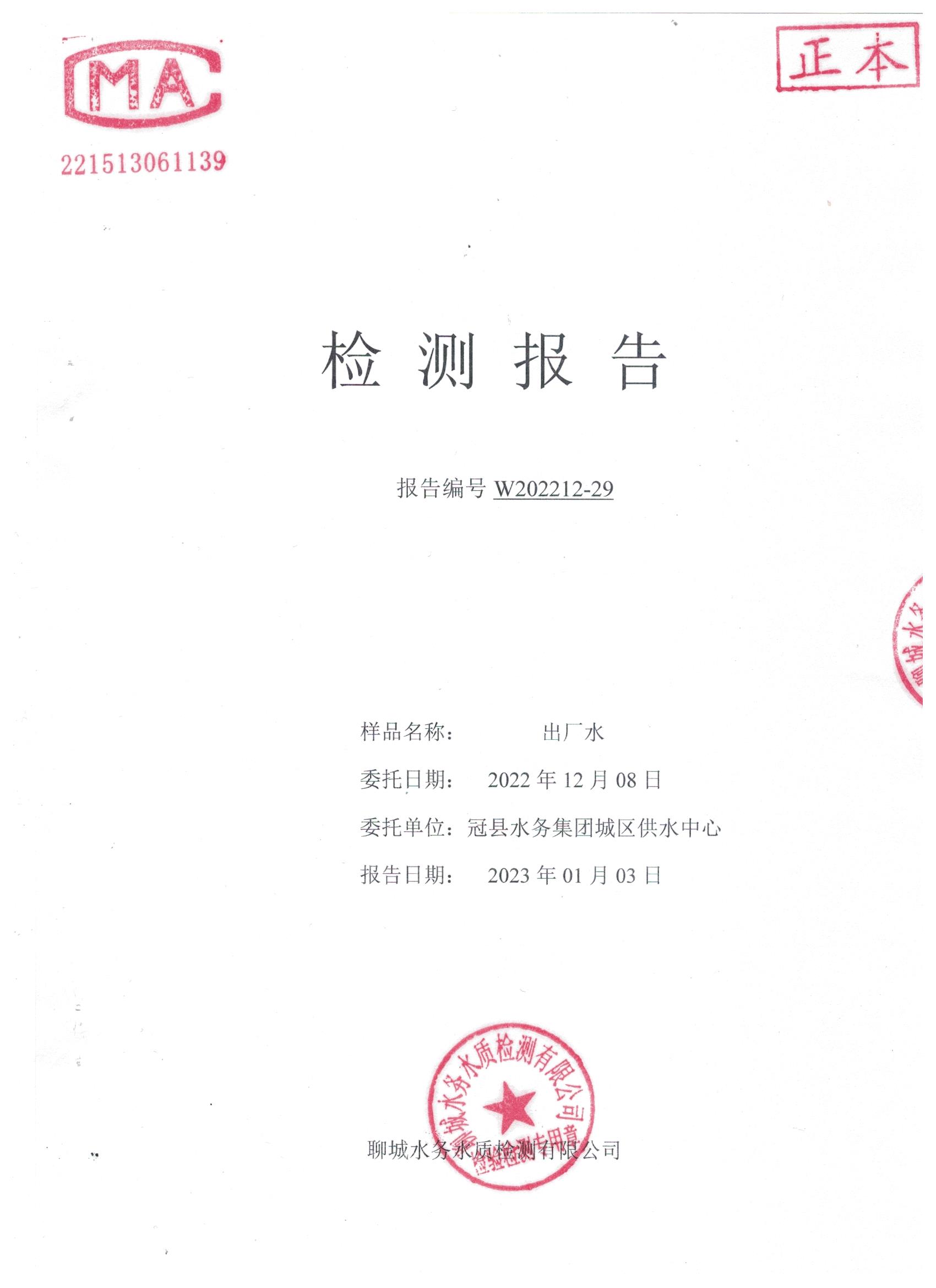 2022年12月水質(zhì)檢測報告