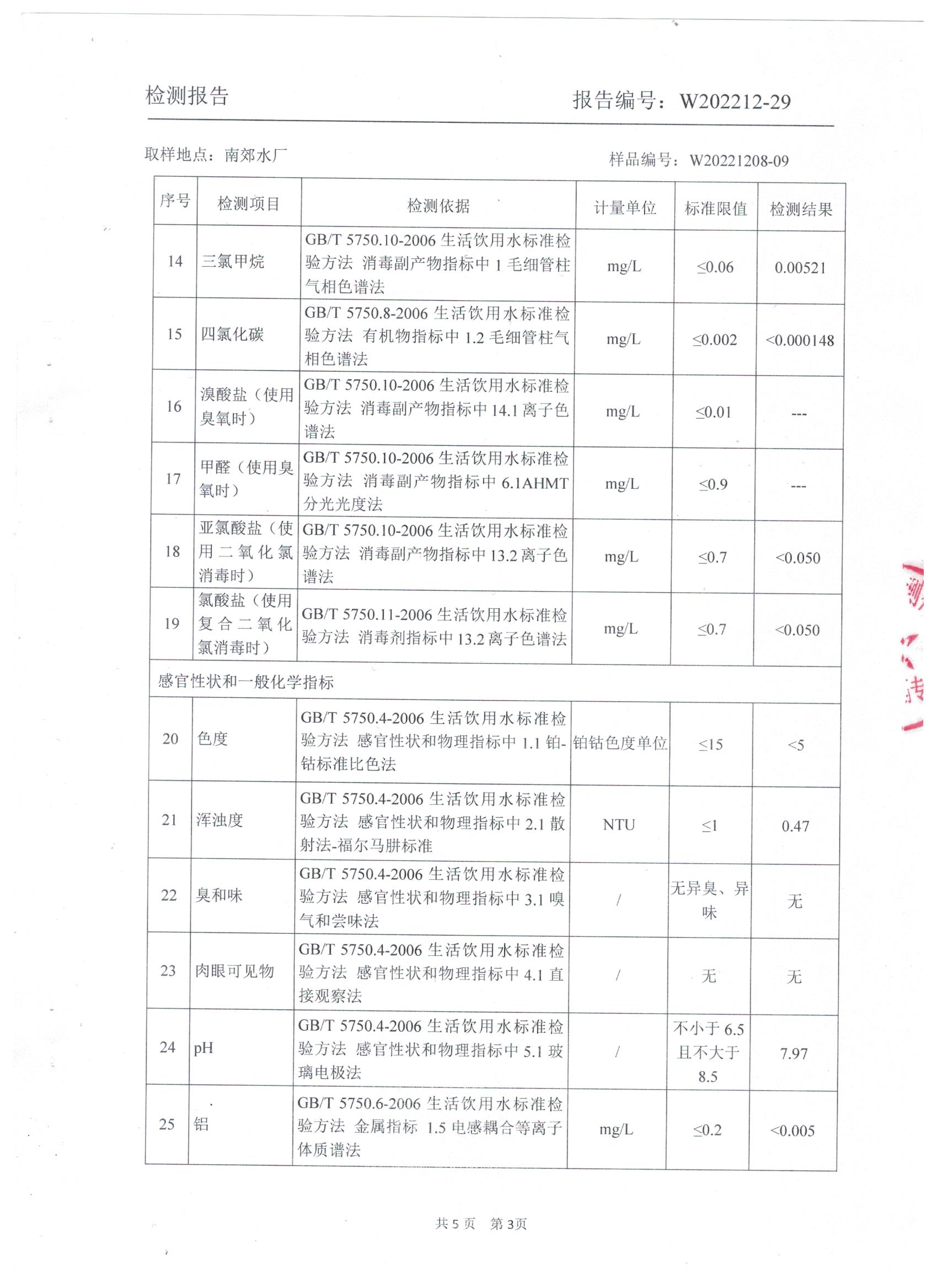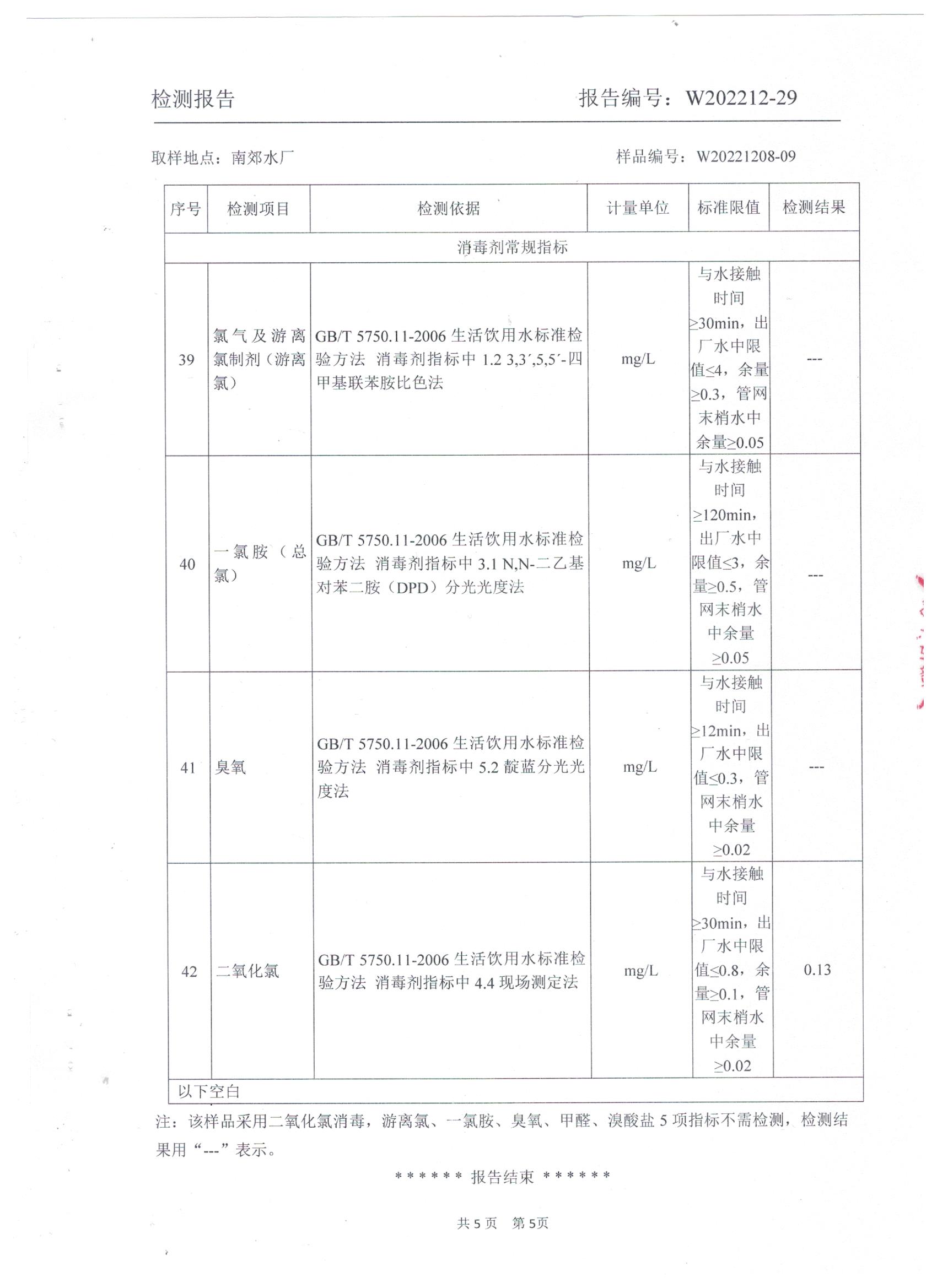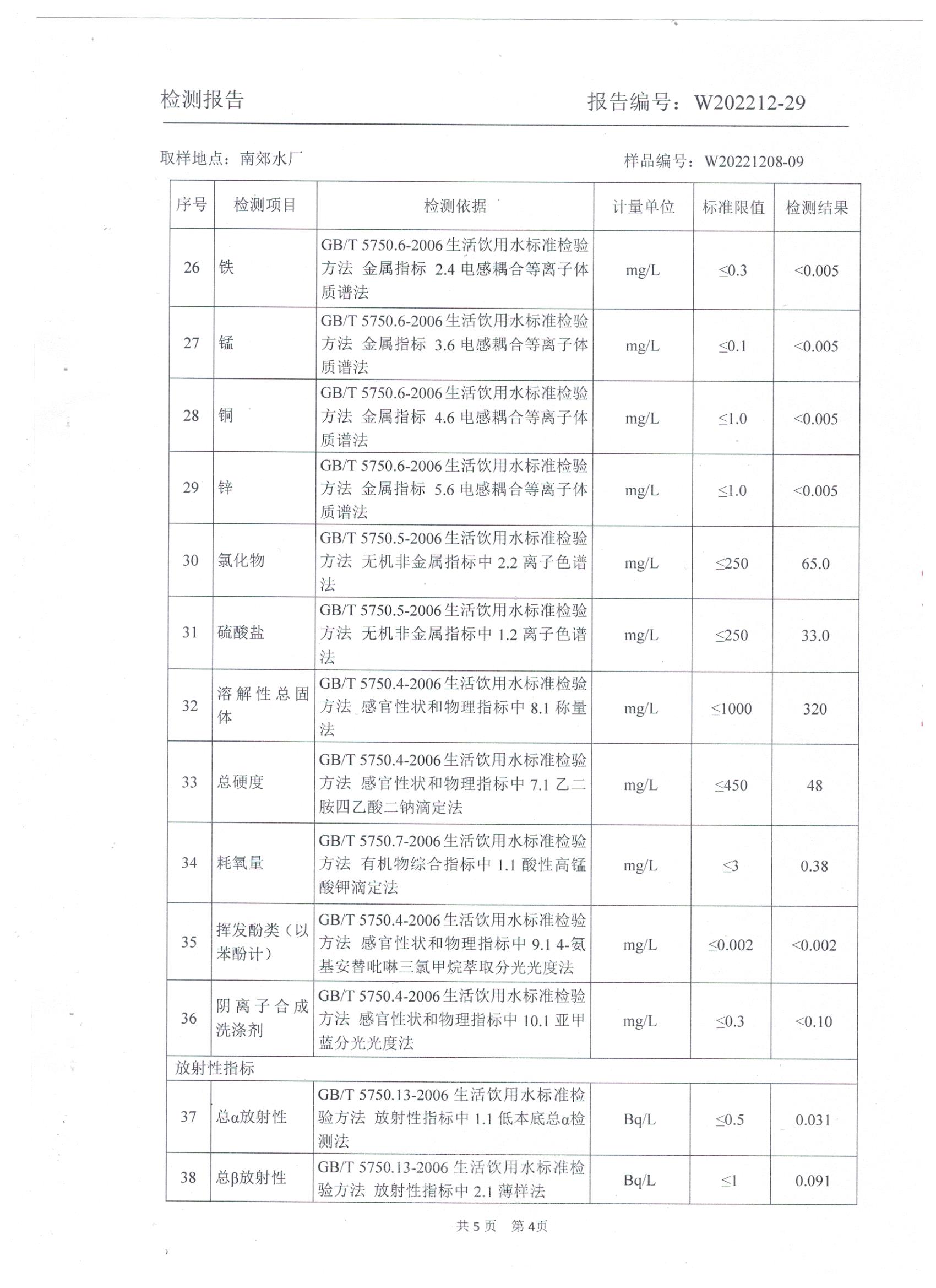2022年12月水質(zhì)檢測報告